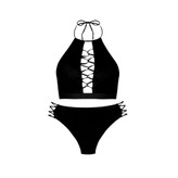 مایو دو تکه فانتزی رونیا دارای شورت اسلیپ که کنار شورت در دوطرف بند کار شده و پد سینه متحرک دارد