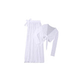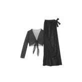 دیدن محصولات مرتبطرومایویی دو تیکه حریر ساده شامل یه کتاب حریر گره ای در قسمت بالا و دامن بلند گره ای در قسمت پایین لباس است .