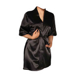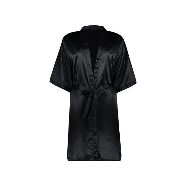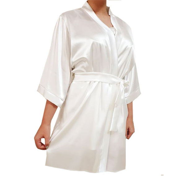 این روبدوشامبر از جنس ساتن در دو رنگ سفید و مشکی دارای آستین سه ربع و قد آن تا بالای زانو میباشد و توسط یک بند با عرض 5 سانتی متر بسته میشود.