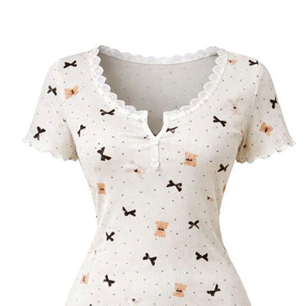 یقه پیراهن گرد میباشد و بر روی یقه تور کار شده و دو عدد دکمه تزیینی بر روی یقه به کار رفته است